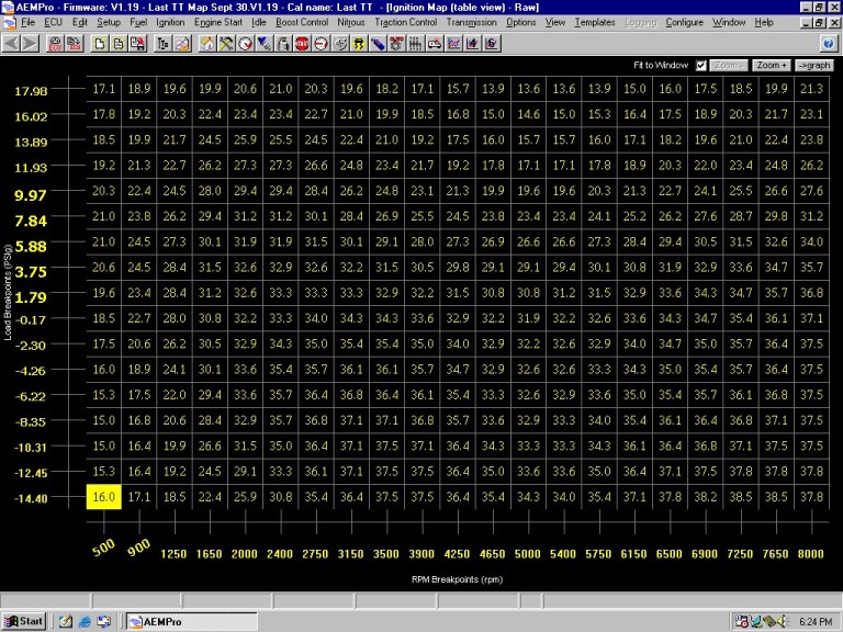 Meanwhile I thought all this time my timing map was conservative! I do know, at least with the old setup, that adding a degree or two didn't change my dyno numbers at all. I figured it was the inefficient turbos and intercooler on that old setup. In fact the attached table is about 1.5 degrees retarded from the last time I dynoed. AND my IACs were very high with the old setup.