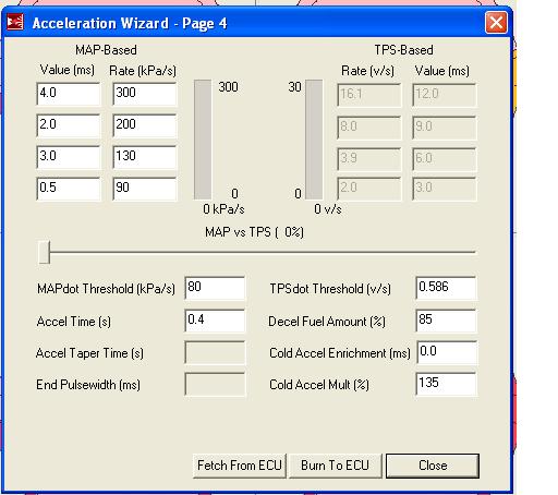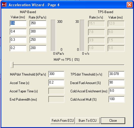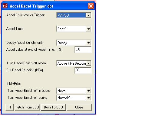 I can't tell how I set the "threshold" unless it's "MAPdot Threshold". I assume setting the threshold means the ACCEL (whatever it does) won't kick in under it, so I set it for 18psi (kpa whatever) and it'll never hit. But it's obviously designed to do something. Educate me.