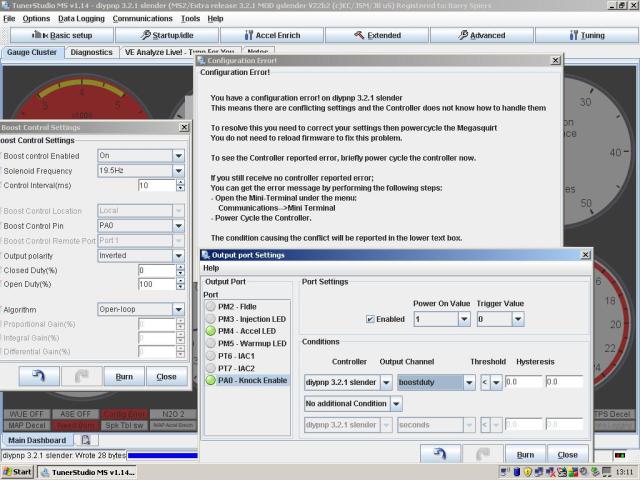 Do I have the output port setting wrong or is it something else I have done? If I turn the boost control setting to off the config error problem goes away.....