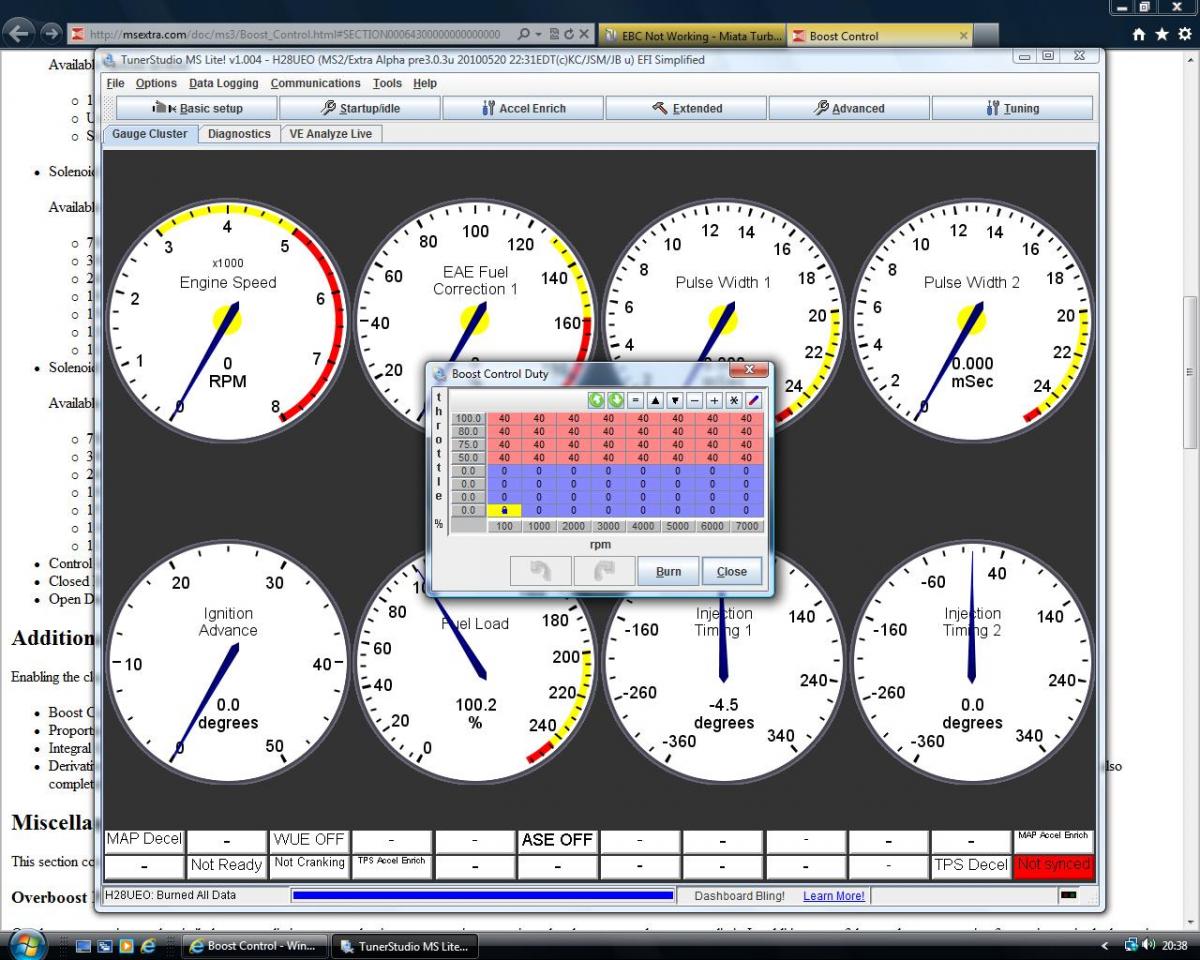 I have a DIY PNP (MS2) built by Braineack around a year ago and the EBC from DIY autotune website. The EBC is wired correctly to the outlet on the side of the ECU (4 pin connector). I have changed all sorts of settings in tunerstudio to get this thing to work. From enabling the device to chaging the tabloe figures. It appears that the EBC is not working at all. Same result everytime no matter what the settings are set to. I just simply hit Overboost when doing a pull.