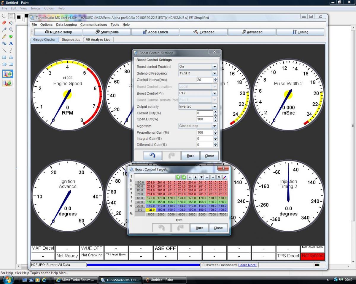 Boost control duty table is set to 0 and all figures at 50% throttle and above are set to 40 as ive been playing around