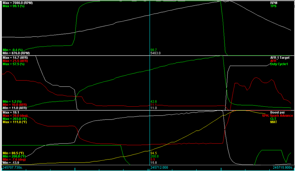 Anyways, made a couple pulls for you guys to look at. All of them are 19-20 PSI depending on how high I reved it. AFR and boost show up at the bottom, which is nice. AFR with WI on will read about 0.5 Lower than actual BTW.