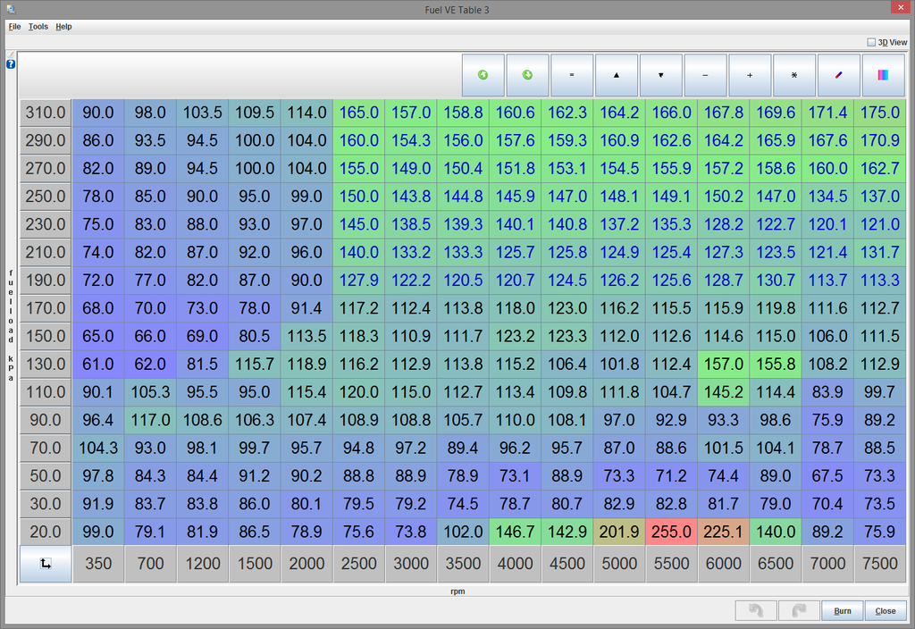 Blue is 4th gear, with +5 VE to the fuel table and +2 degrees timing so 16 degrees timing.