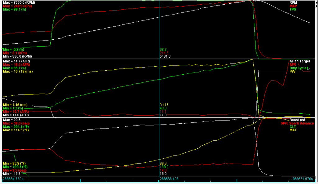 And yes absolutely you use more fuel with more power, that's why the duty cycle is climbing on all my logs. I'm certain this thing is breathing since AFRs are flat, while duty cycle is climbing.