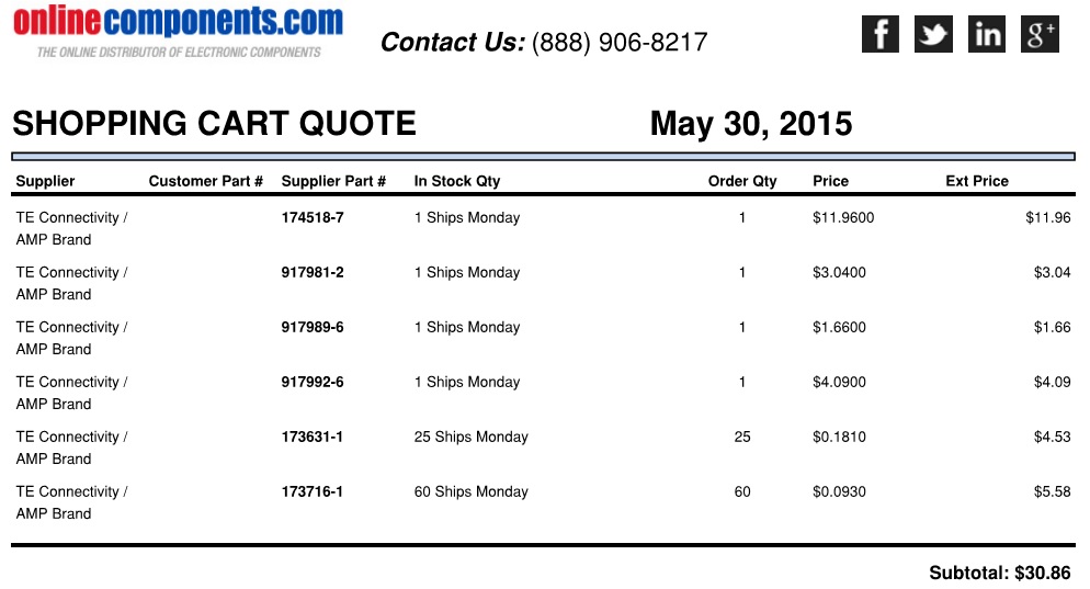And just so I can contribute something for the future, here are the parts needed for this harness (Mouser catalog and others carry them). These are preliminary I've ordered samples, will report back: