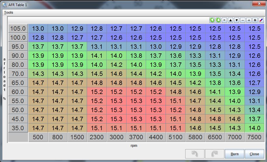 You're 105 row really is useless though. We were jumping between the 100/90 row for WOT pulls. If you actually go slightly above 100, it'll interpulate anyways. Not that you need more resolution you MS2+ bastard, but just an FYI.