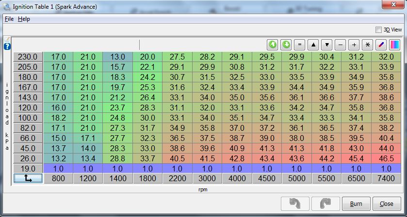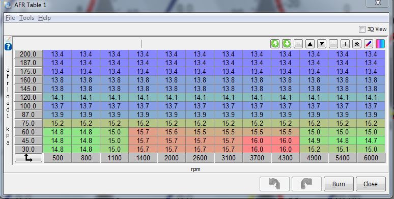 Through a bit of trial-and-error, as well as having a look at a few publicly available maps, i've cobbled something together which runs pretty nicely, returns fairly decent economy, and has lots of power over 4K. I don't believe it's detonating, knocking or pinking, but i'm fairly new to this and haven't developed the ability to hear that on the road. The map extents beyond 100kpa as the maps i worked from had a wide range of aspiration systems. I am currently running naturally aspirated (although i intend to fit a TD04L in the coming months).