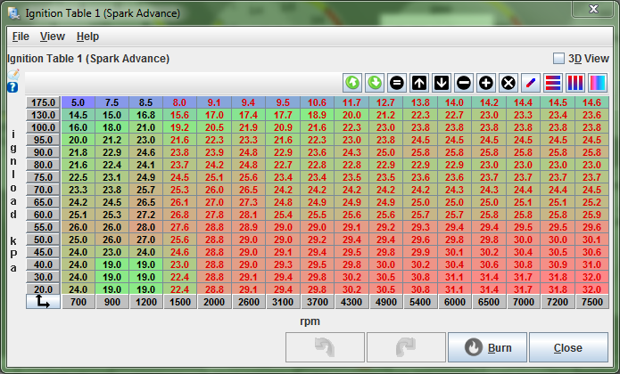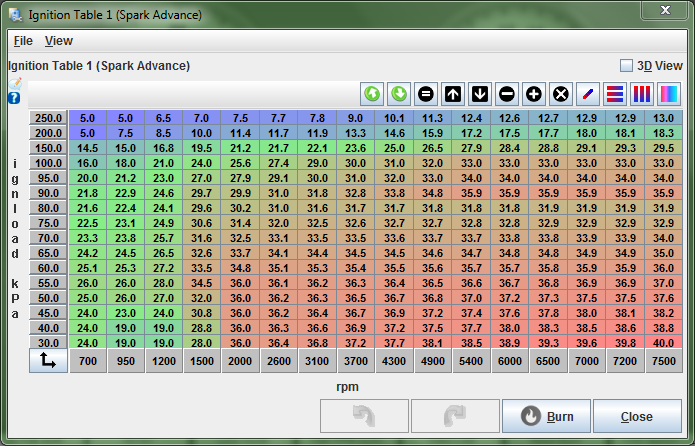 I bought the DIY version of MS so it didn't come with a base map. This is where I got my base tune: MegaSquirtPNP by DIYAutoTune.com I had to pull a TON of timing out of that base tune and that is probably why it looks so weird. I attached a picture of what the map looked like before I changed it. If someone wants to recommend a new spark map that would be great.