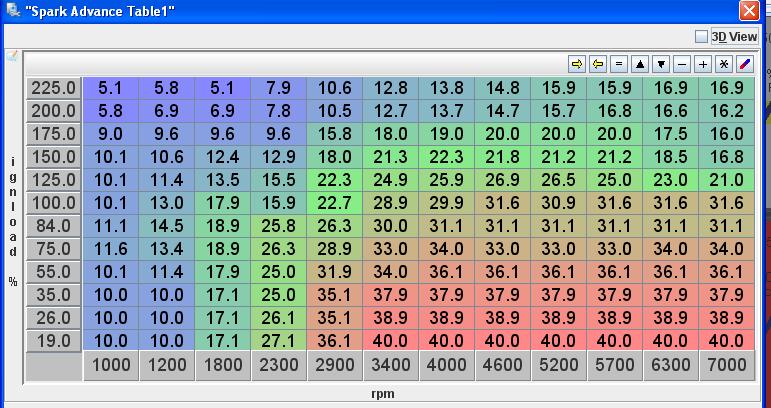the table was set-up on the road...and to be honest was meant for my previous setup (JRSC at 11psi)...I did play a lot with fuel and afr tables but I didn't touch the spark table after I fitted the MP62 2 weeks ago...I am not that familiar with tunerstudio yet