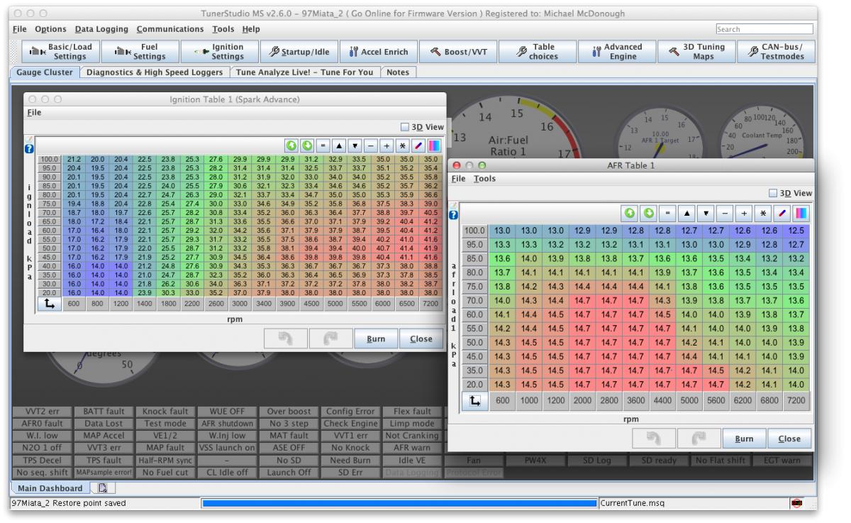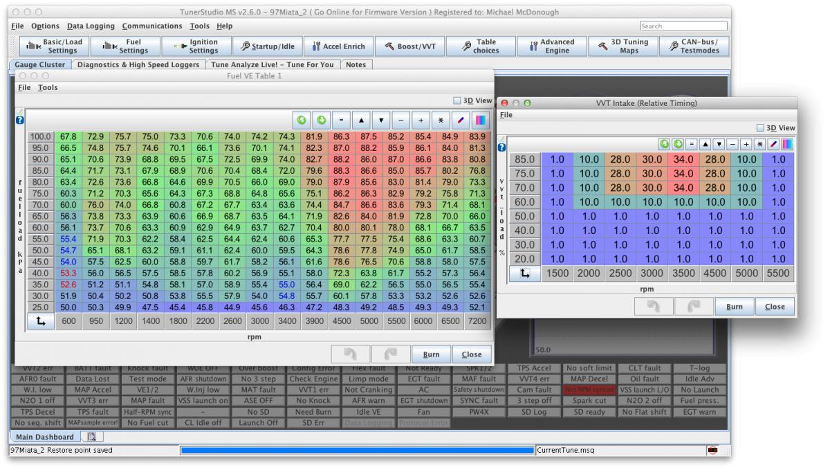 Hi, I swapped in a 2003 VVT 1.8 engine into my 97 Miata earlier this year. I have it running pretty well on a Reverant built MS3X Basic ECU (no power adder yet). However, now that I have more experience with the setup, I want to take care of a couple of loose ends and go over the entire tune.
