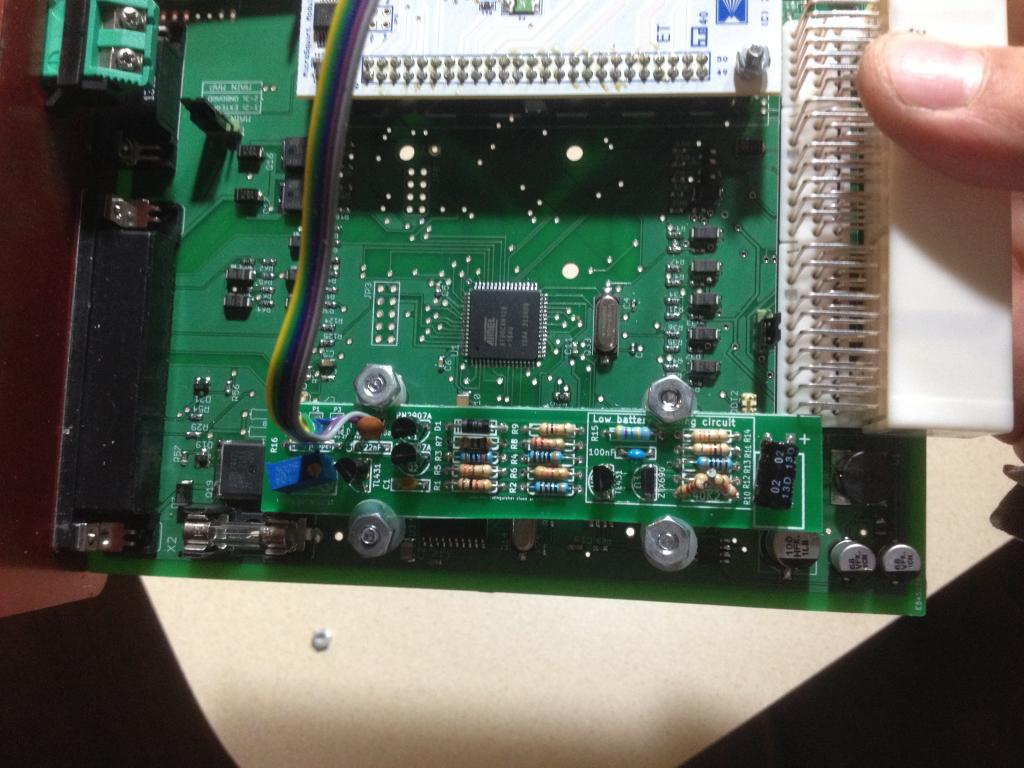 in case its usefull to someone else here is how i mounted the franks board in a rev built MS2+ case. since it cant span the whole case i used existing holes in main board.. nylon washers little screws and nuts worked out pretty good. i ran the wires out side the case and to plugs so i can still fully remove ECU now with out cutting wires.