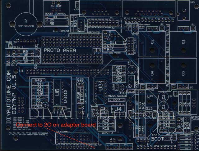 This ECU was purchased used. I'm just helping him to sort it out. It was partially assembled and I had to go over all the build steps to verify that it was assembled correctly and added what was necessary for his car. So from what I understand, I connect the fuel pump connection on the 1.5B mainboard to 2O