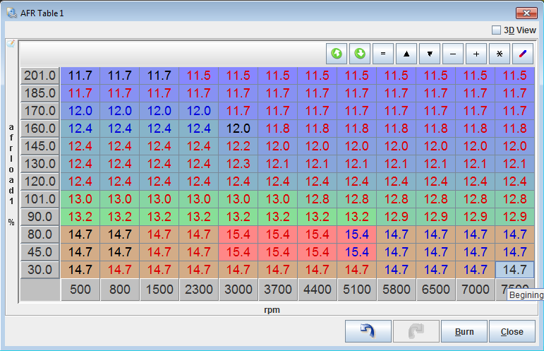 I also dont like where you're trageting 16AFR, that's where youll be sitting at cruise and using very very light throttle inputs to maintain speed...you'll find that's a bit too lean and it'll hesitate on/off throttle when you're costing.