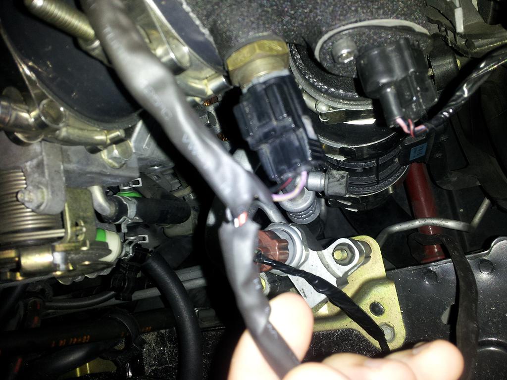 I installed my reverant built MS2 tuning seemed to be going well until I took a log to solve a problem with my vtcs solenoid. While I was looking at the log I realized my IAT sensor was reading a static 70 degrees which I assume is because it is not actually reading anything. I have a GM IAT sensor that is tapped into the coldside intercooler piping right after the intercooler. I wired it into the two wires of the stock IAT sensor like so: