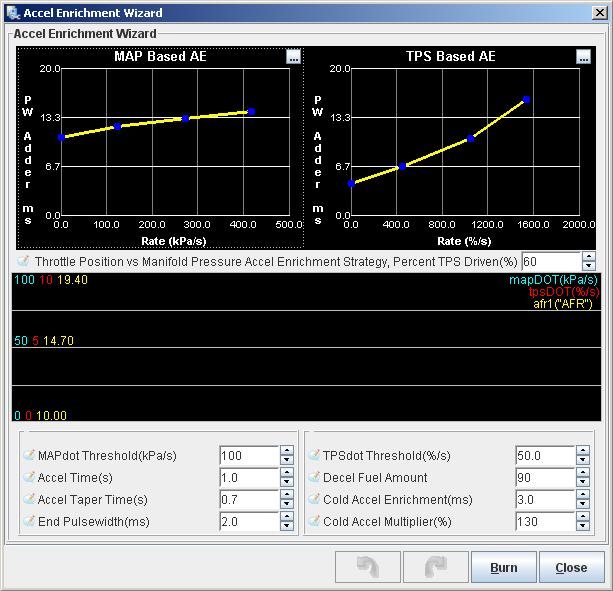 Well, I tried your map. I guess it helped a bit driving around the block. I also played will the AE features. I turned on EAE but didn't really adjust anything since I need to figure out what exactly each chart does. Adding in a bunch of fuel in the Accel Wizard did help limit the problem at some points, but unfortunately, going from idle to as little as 1% throttle could still cause a stumble, though with larger throttle changes there was very little lag.
