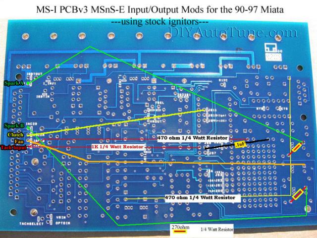I have recently bought a pre assembled MS1 V3. I have carried out the Miata specific modifications as it says on the Wiki, the only problem is I followed the diagrams on on MS2 page