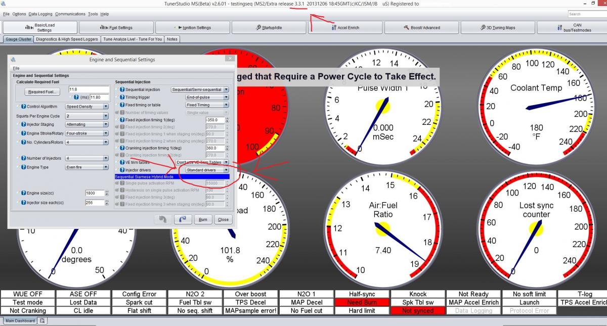 The thing that tipped me off was a recommendation by JSMCortina over at msextra.com forums where when I flashed the release firmware and opened TS to check the AC idle up feature was working correctly, I didnt have my input available. I asked a question over there and he said to make sure to select the correct s19 file when flashing. Without noticing I selected option 2 (which is microsquirt cased) as I usually do when flashing new firmware. Well guess what, its option 3 (microsquirt module). Thats all it took to throw the whole thing off.