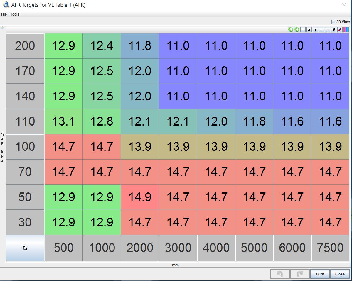 Looking for some help with tuning. Car was on e85 for a while and ran very well. I had it professionally. I have moved and my favorite tuner is not around anymore so i am attempting to tune the car myself on pump 91. I am in Colorado so elevation here is a factor. I am on original MSpnp. Attached is a current map and a log. I have to say that autotune feature in TunerStudio works very well for a safe base tune of the fuel map. I would like to hear peoples input in the VE AFR Target map.