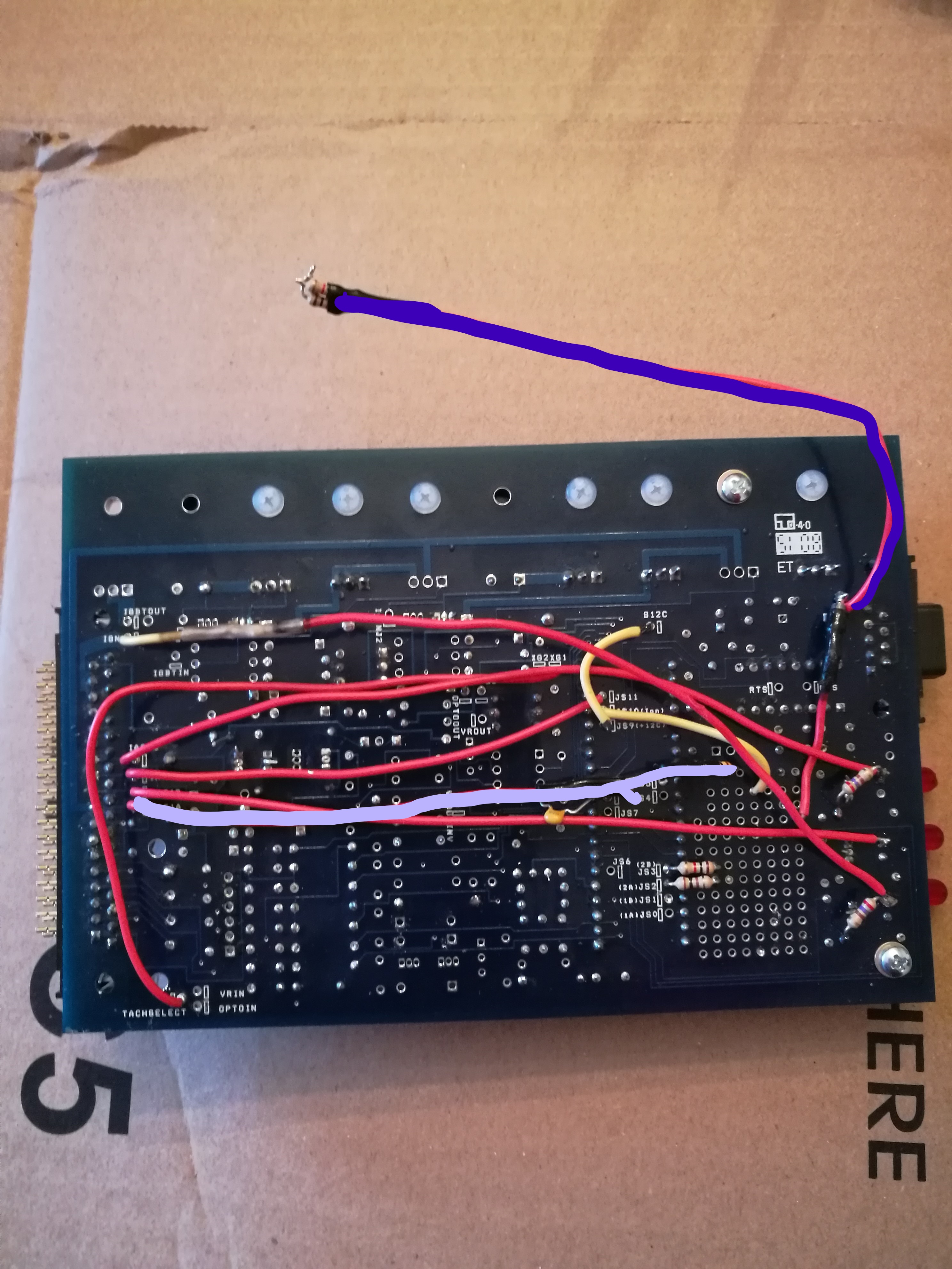 I did Braineack's writeup Ms1 to Ms2, but i'm a little confused what is with the blue and purple painted wire in my jpeg, my opinion i can dissambel it. The blue one did nothing and the purple is for the cam input, where i get in the end on ms3x board. Is this correct?