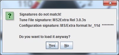 I cannot load a base map onto the megasquirt and i receive this image:
