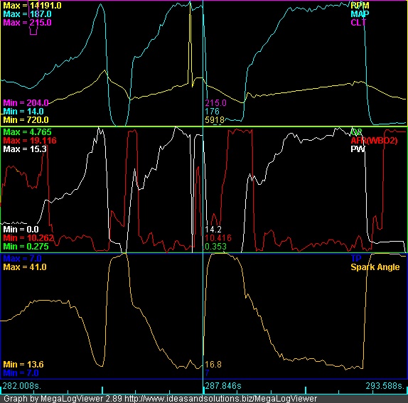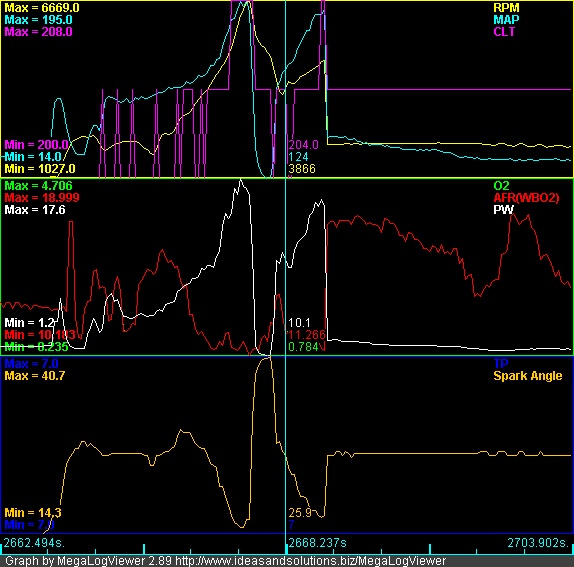 Its like a bucking bronco! This can give a guy whiplash! When it cuts it cuts! On the 2nd data log it locked up Megatune Don't know if that was a MS problem or just the laptop bouncing around the car as it bucked. Also the tach on the dash wildly drops fast when it bucks. Almost feels like an electrical problem But I have touched nothing electrical.