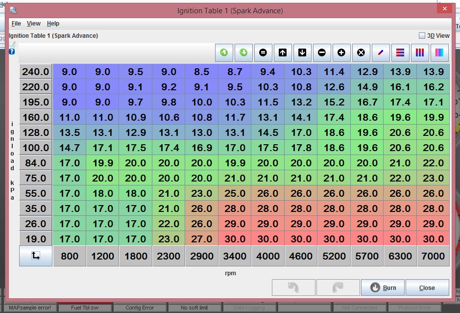 Im sorry this is kinda new to me, im just learning as i go and dont understand alot of this mapping tuning process. I basically sat in a viewing room for an hour watching my car on the rolling road as he mapped it so im unsure how much attension was taken into each cell. you say the ignition is very conservative, can u elaborate on that please?