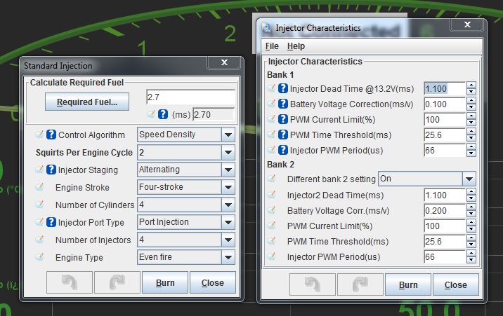 Ok ive swapped to having both banks on 0.1ms per volt, if anyone has some known good settings for this for ID1000's id love a SS or directions on how to find the correct value.