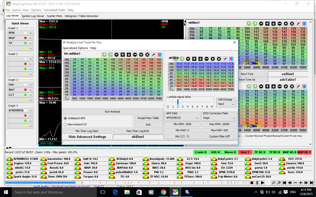 Once i had installed the intercooler i did several runs and noticed that the AFR's under boost using the existing old VE table. Once i got home i plugged the log into VEAL and it generated the higher VE table which i assume will richen up the AFR's on the next run.