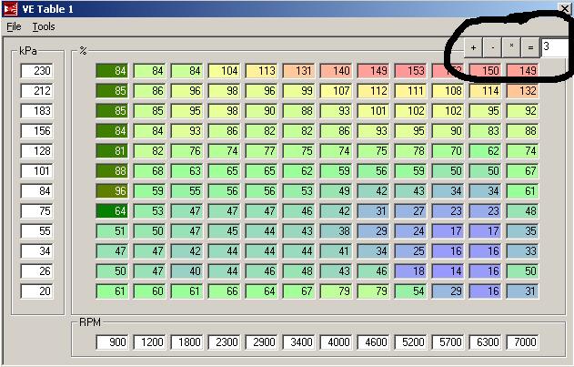 I've tried this method when wanting to change just a single row (VE Table or spark table). When the boxes appear, pressing the + or - buttons don't inc or dec the values at all. = and * clear the selected cells. I searched for this in the megatune manual, but could not find any info. Is there a trick to this?