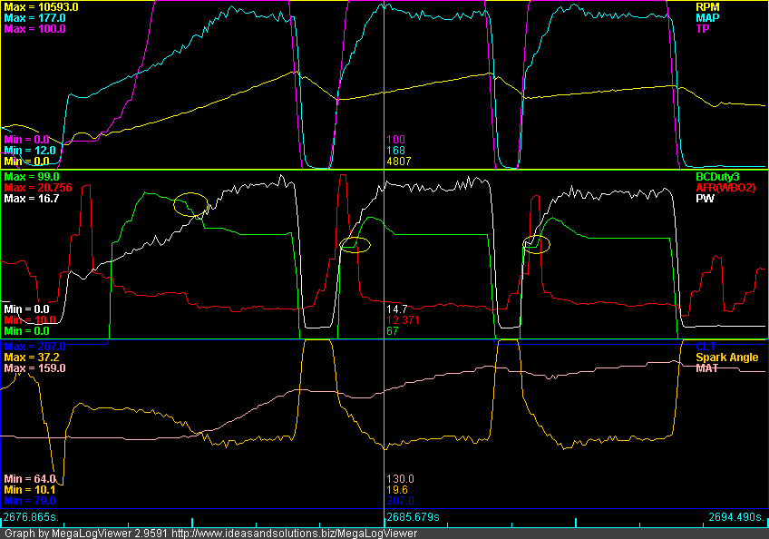 1. When the throttle isn't open. Megasquirt uses MAP as an indication of boost. MAP, by definition, is sourced AFTER the throttle. As we all know, the throttle is the primary and most powerful control for MAP. If you are trying to control boost (i.e., MAP) with EBC valve duty cycle and the throttle is closed or partially closed, you are wasting your time.