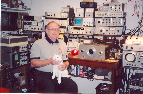 And since I have no updated images for today, here is a picture of a man with entirely too many pieces of analog test gear holding a cat: