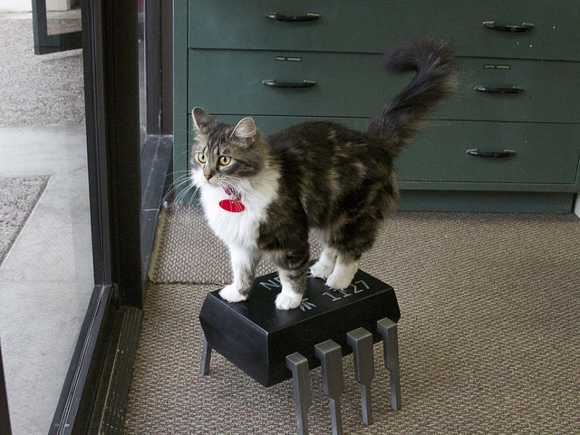 I've been playing Team Fortress 2 all night rather than working, so here is a cat named Zener standing on a 555: