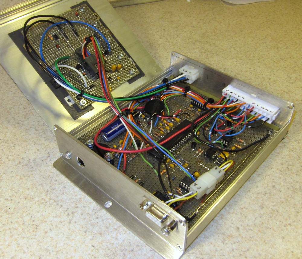In addition to being schematically separate from the main board, IGND is also physically separate from it. IGND exists only on the high-current board (the one with all of the TO-220 parts on it) and the only place where +5 shows up on that board is at the regulator, which is there simply because of the heat sink (from which it is electrically insulated.) For that purpose, I am carrying AGND to the regulator via the harness which interconnects the two boards. Electrically, the regulator is completely isolated from the rest of the high-current board.