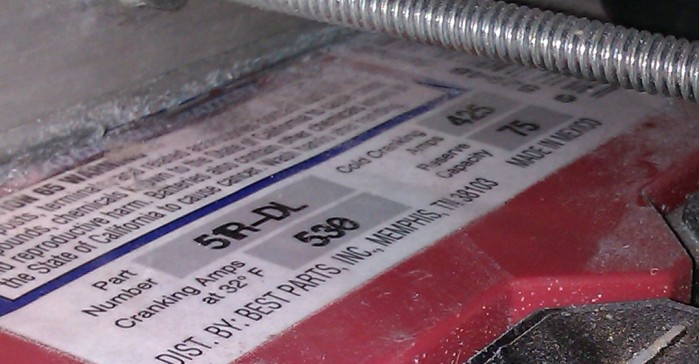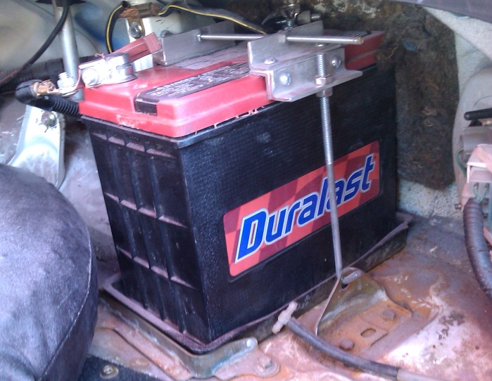 I have no idea how old this battery is. It was in the car when I bought it 2.5 years ago, and it didn't look new then. Normally I'm pretty anаl about things like running flooded batteries in Miatas, but the rest of the car was in such ****-poor shape that I just said "**** it" and fabricated a simple mount to hold it in place. (It was just sitting there loose when I got the car.)