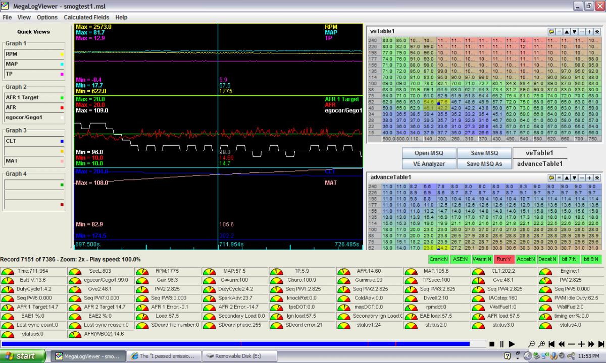 I loaded up this table and ran VEAlive in TS for the 30 minutes it took me to drive from work to the dealership for the smog test. Our local club was having a tech session that night and I knew the mechanics would be cool with me having the laptop hooked up during the test.