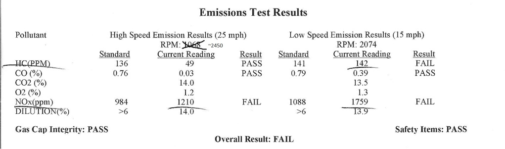 The low speed hc failure will be easy to fix, it was running a Tad too rich. I'm mainly worried about the nox.