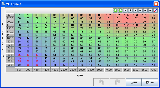 Just to let you know you alter the VE table while the engine is on and watch live real time changes happen.