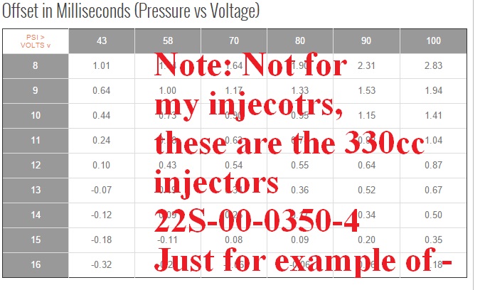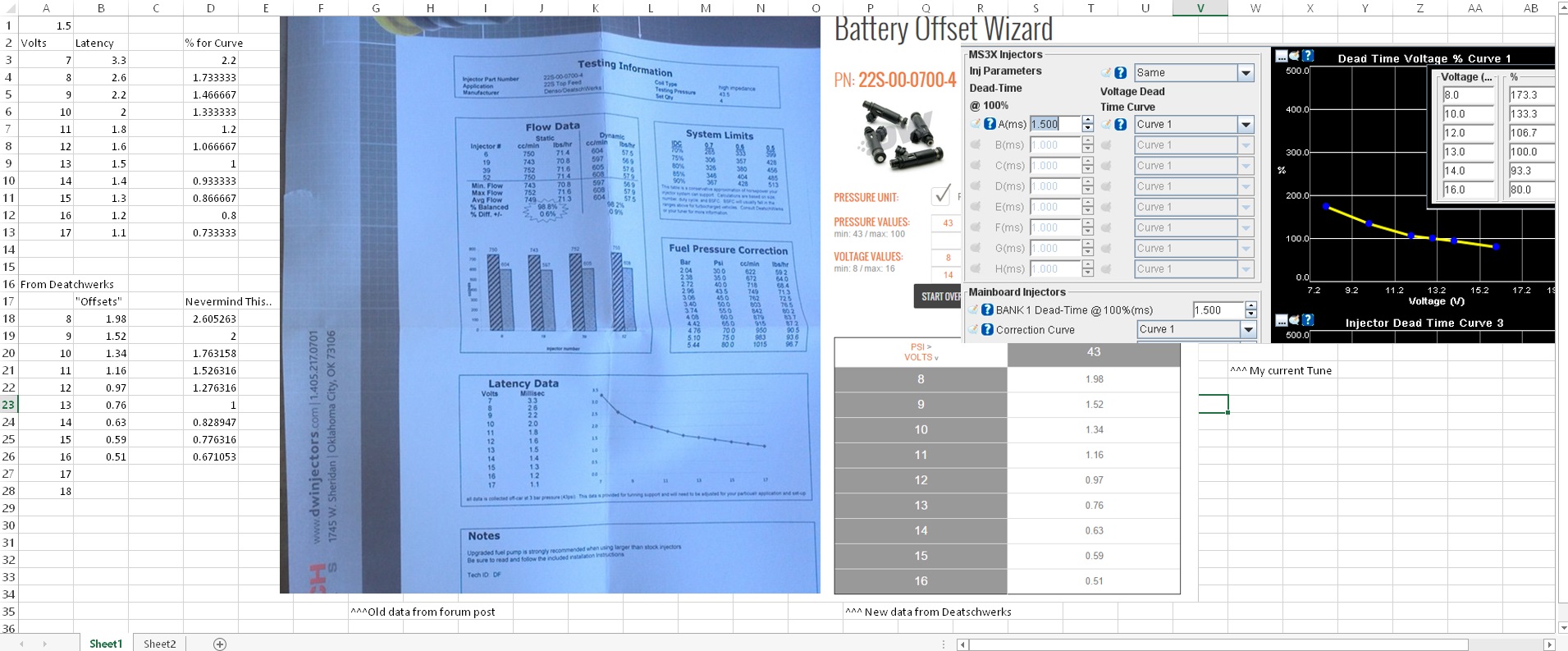 I did call Deatchwerks, and the first response was that they don't provide tuning advice (my neck hurts fro the head shaking). The next response was that the offset data IS the latency (how long the injector takes to go from closed to open), to which I then asked why their 350cc injectors list a negative value for the offset, to which he then got confused... I reiterated that I'm simply asking about the characteristics of the injectors that they manufacture and I purchased and not tuning advice, and to his credit he did take down my email and may get back to me with information...