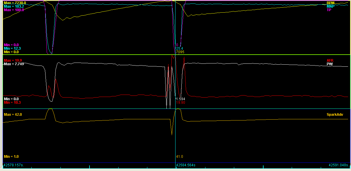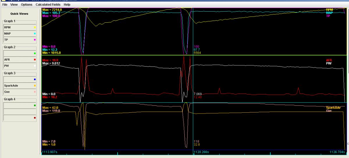Wouldn't that cause *dramatic* changes in the log? All that happens is AFR goes from 12.0 to 13.2 and back to 12.0 in 0.1 seconds.