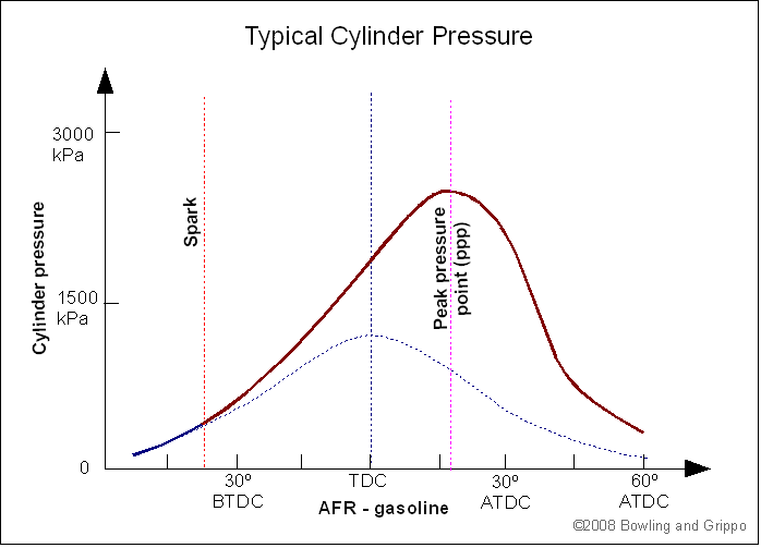 I should note that the goal is almsot always the longest duration burn, hence the awesomeness of the soft-head piston design. However without mechanical octane in that type of combustion chamber, we run a shorter duration burn at higher piston speeds because it creates more peak-dynamic cylinder pressure.
