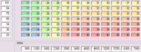 In the middle RPM columns, I'm running 6-8° more timing in the upper half of the MAP range.