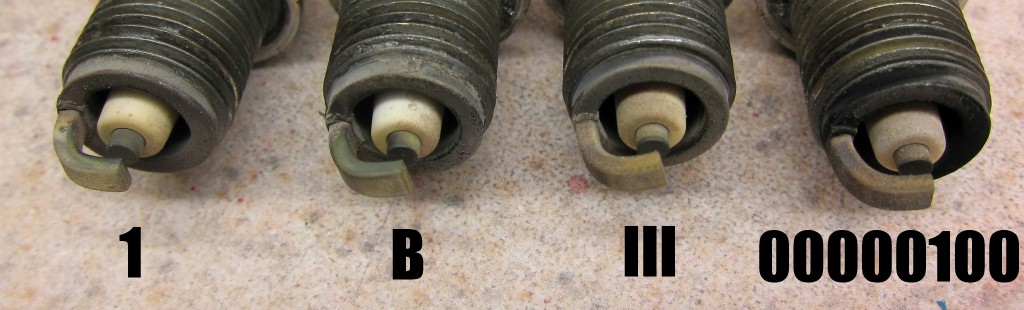 The insulator on cylinder B is slightly whiter than the other three, but they all look pretty good to me.