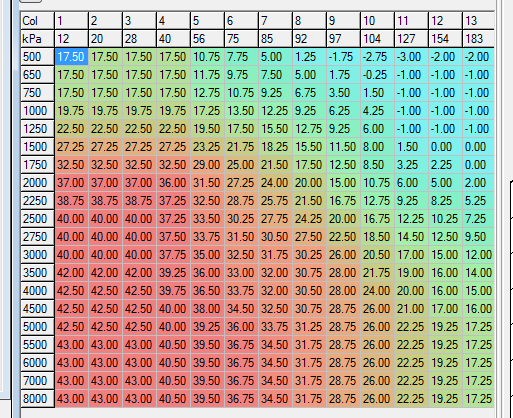 But I will say, that 20kPa row always seems to be victim of odd VEAL tuning when in cruise, so maybe it would benefit from at least another row below it to help. It's been a while since I lasted tuned, but I remember it always wanting to pull fuel from that row and then leaving me with a lean condition, so I've always used a kPA filter on VEAL to never allow it to tune under 35kPa or something like that.