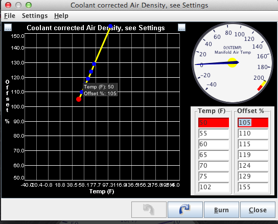 This method will prevent excessive richness when the airflow is low and the IAT reports low temps. It works well when the IAT reports an accurate temperature of the air. When the IAT is heatsoaked from plumbing after a hot restart, thus reporting a higher temperature than the actual air temp, then you have the opposite problem.