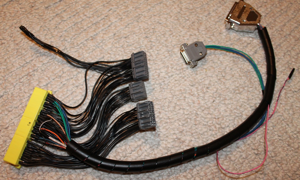 The next step is the harness, which is quite a serious undertaking for a parallel install. Here’s a pic of mine as well as the wiring scheme for the DB37 connector. All the pins from the stock ECU are carried through to the harness apart from the 4 injectors and 2 ignition outputs.
