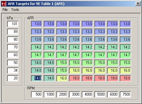 - My AFR target tables have all been reset to 14.7 for all TPS/RPM ranges.