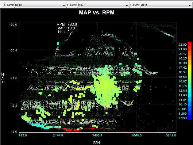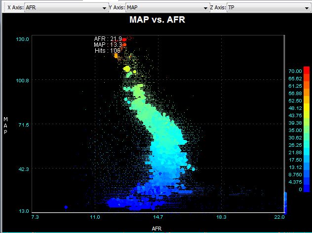 Take AFR for example, I fully expect the AFR to have gone all the way from 11.8:1 to 20:1 during a full log, All a scatter plot would show me is if it went richer or leaner than that, but then I could also tell that from MLV by looking at the max/min values?
