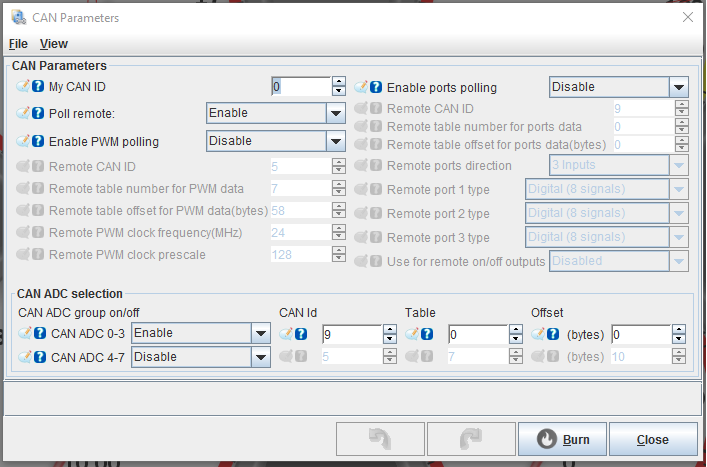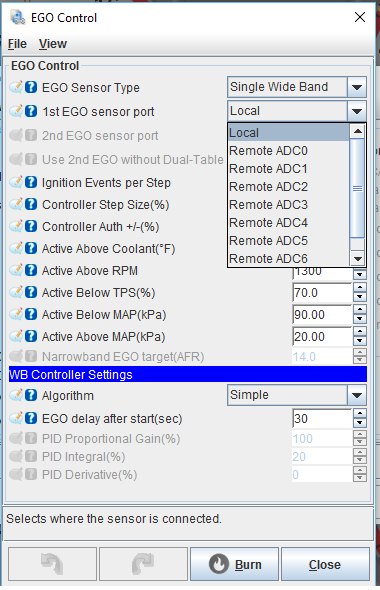I've configured the CAN ADC 0-3 like you specified. I've also tried all combinations of the Poll Remote / Enable Ports polling / Enable PWM polling disabled and enabled, but I'm still not seeing the option appear in the EGO dialog. (Attached screenshot #2)