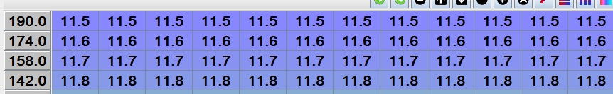 I've seen quite a few AFR tables that have the same target AFR all the way across in the upper rows of the table, similar to the attached jpg. If I were to remove (move) those two middle rows in the picture, so the table went from kPa 142 to 190, would the PNP Pro work the same way in the upper load area since the change from row to row is linear? If so, would there be any disadvantages to doing so?