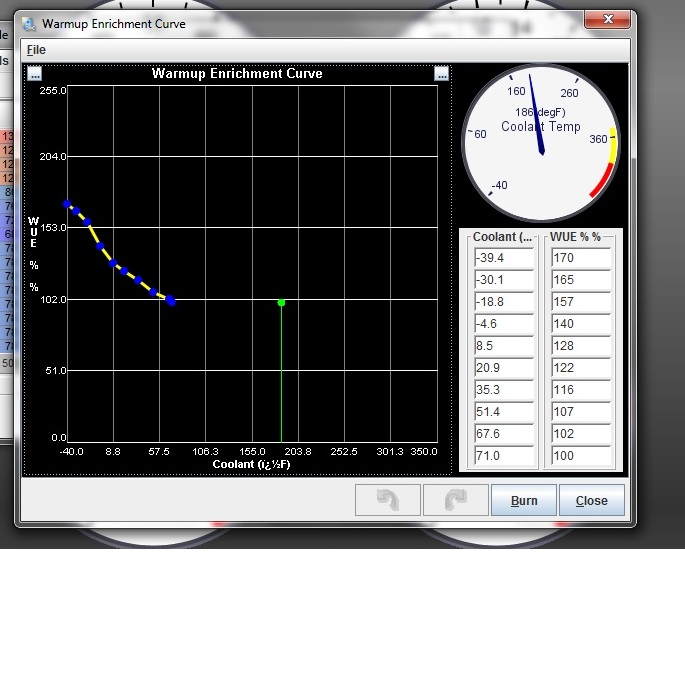 Just extend out the coolant values to 190 or so, and put in WUE values that give the A:F ratios you're wanting to land within.